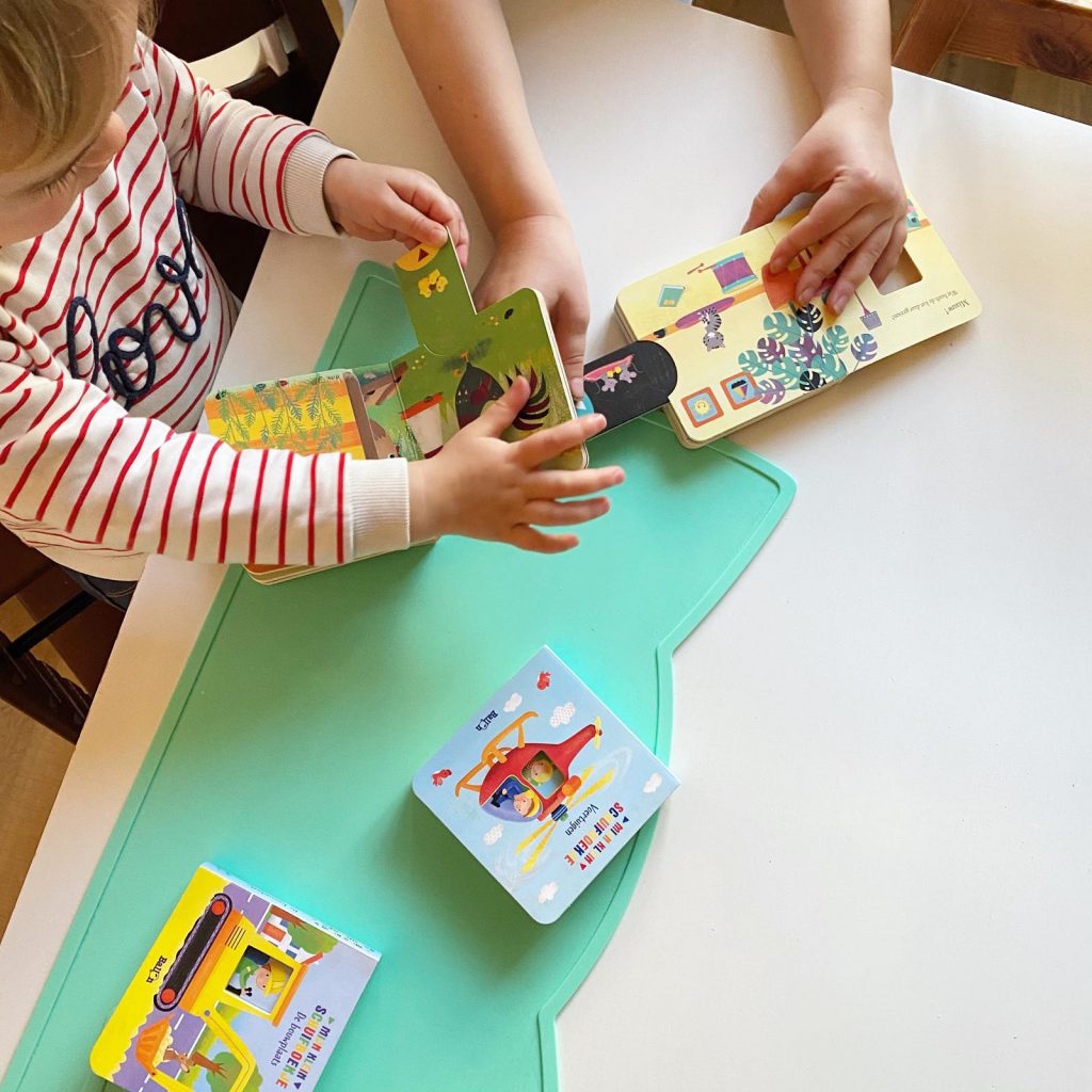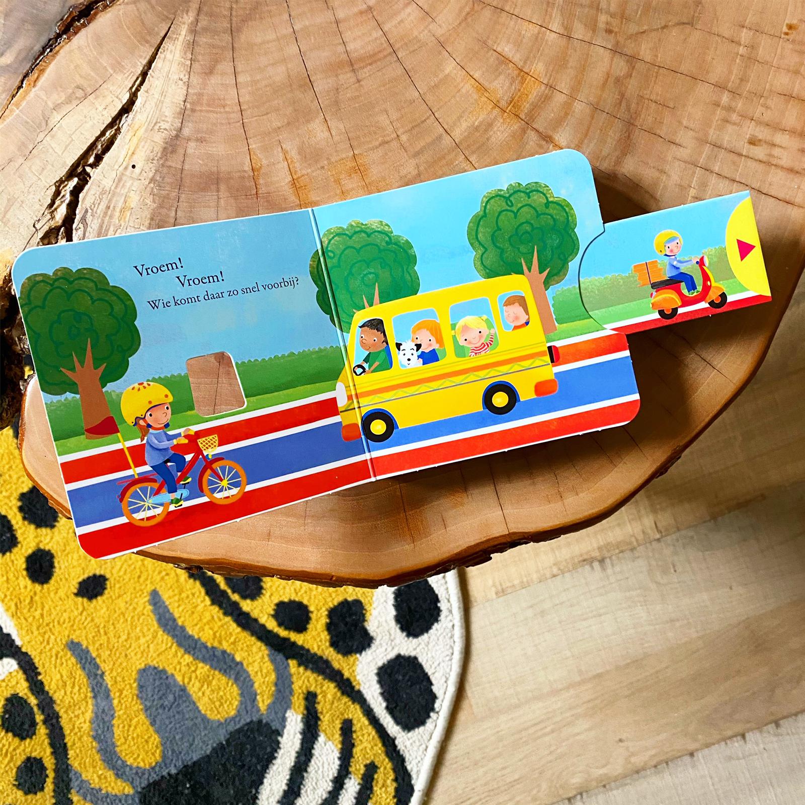 Kleine friemelvingers opgelet! Nieuwsgierige handjes gevraagd en echte wijsneusjes die alles zelf willen doen. Wat zijn dieren en voertuigen toch interessant. Het lieve van de dieren en het grootse van voertuigen, een leuk contrast en beide meestal geliefd bij jonge kinderen. Mijn klein schuifboekje heeft 4 toffe boekjes uitgebracht met de thema’s: Voertuigen, huisdieren, de bouwplaats en op de boerderij. Gwen, mijn 2 jarige dochter staat te popelen om te gaan ontdekken.