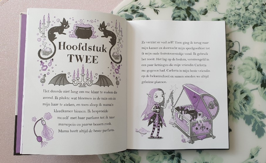 De illustraties zijn geweldig leuk en wij genoten erg van al die leuke kleine tekeningetjes. Af en toe staan er paginavolle illustraties in. Draken, Feeën, heksen, ketels, magie, vuur, bezems, boemen, bladeren er is zoveel te zien. En dat is voor jonge lezers altijd een welkome afwisseling op het lezen.