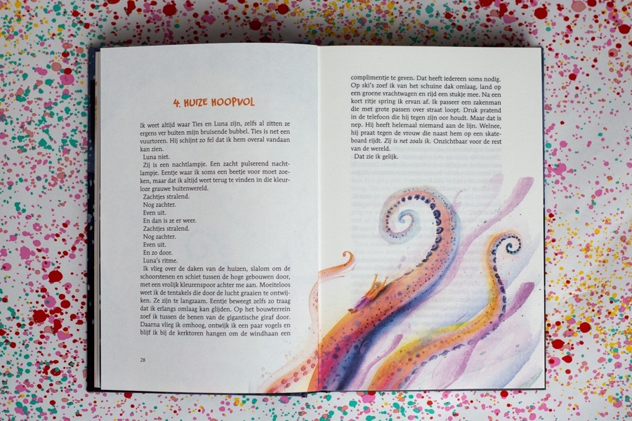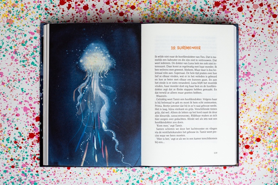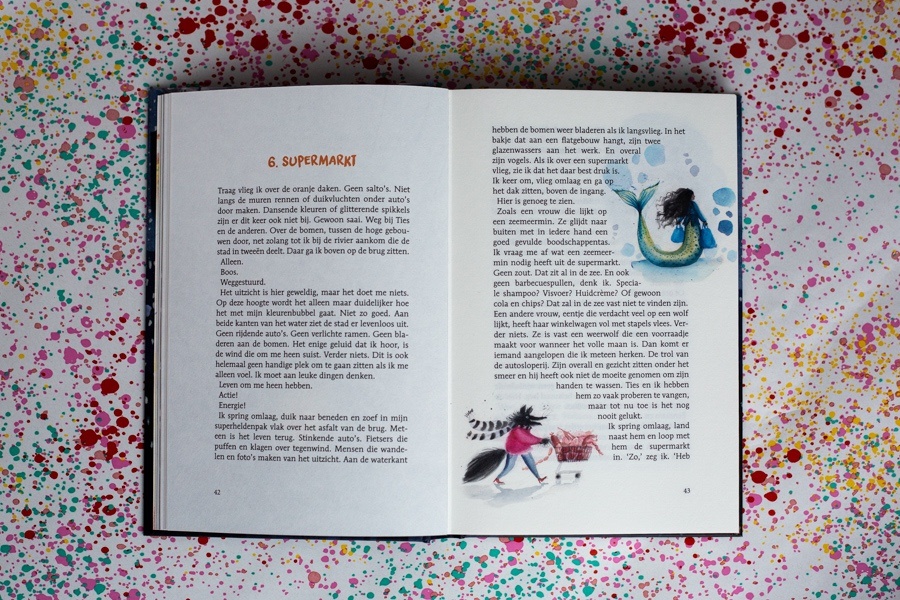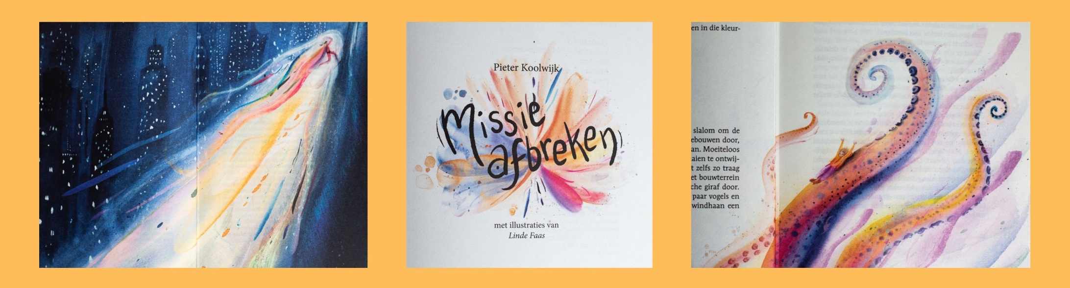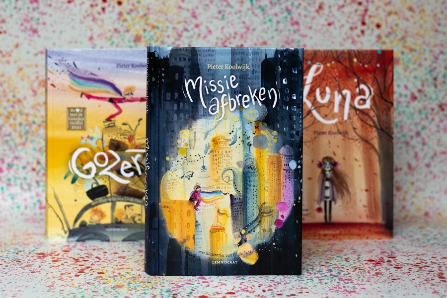 Sinds een paar jaar ben ik ook helemaal fan van de illustraties van Linde Faas. Ze schreef en illustreerde al meerdere eigen boeken. Maar bijna alle boeken van Pieter Koolwijk heeft zij ook geïllustreerd. De prenten in Missie Afbreken zijn dan ook weer echte pareltjes. Ze verbeelden exact wat Pieter in zijn teksten lijkt te bedoelen. Zo treffend en gewoonweg prachtig. Heerlijk lijkt het me als je kunt schilderen wat je bedenkt, ik ben lichtelijk jaloers 😉 maar geniet zo extra van de boeken.
