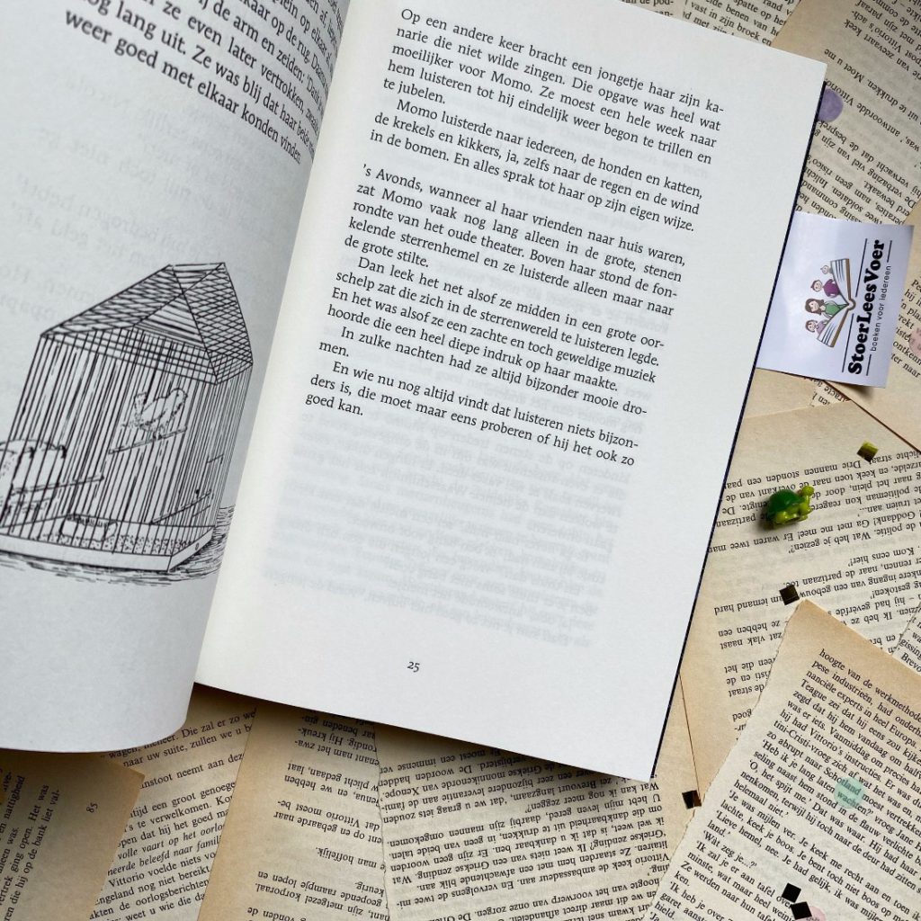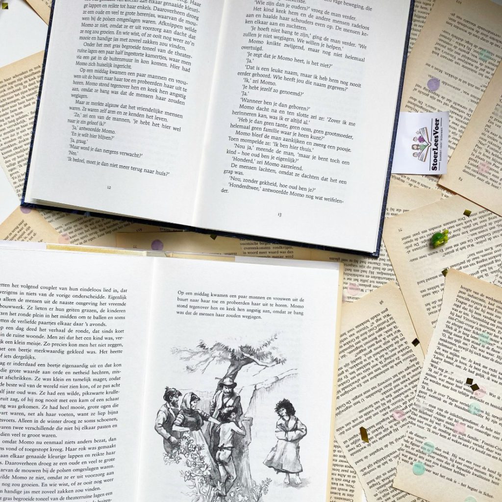 Voordat ik in het boek van Momo dook had ik wat snelle thrillers, YA en vooral nieuwe verhalen gelezen. Ik moest voor mijn gevoel ook echt even schakelen in Momo. De herziene tekst is nog net zo klassiek gebleven en Michael Ende neemt zijn tijd om zijn verhaal op zijn manier te vertellen. Het is zo rijk, hier dender je niet zomaar doorheen. Nee beter gezegd, hier wil je niet doorheen denderen. Hij laat me nadenken over bepaalde vraagstukken zoals over wat doet een 13 jarig meisje alleen op straat? En wat is juist om te doen als gemeenschap. Wat me opvalt is dat volwassenen en kinderen in dit boek met elkaar in gesprek gaan op gelijkwaardige manier. Er vinden echte dialogen plaatsen van hoor en wederhoor. Een ieder heeft wat te zeggen en daar wordt naar geluisterd. Bovenal door Momo want die kan heel goed luisteren.