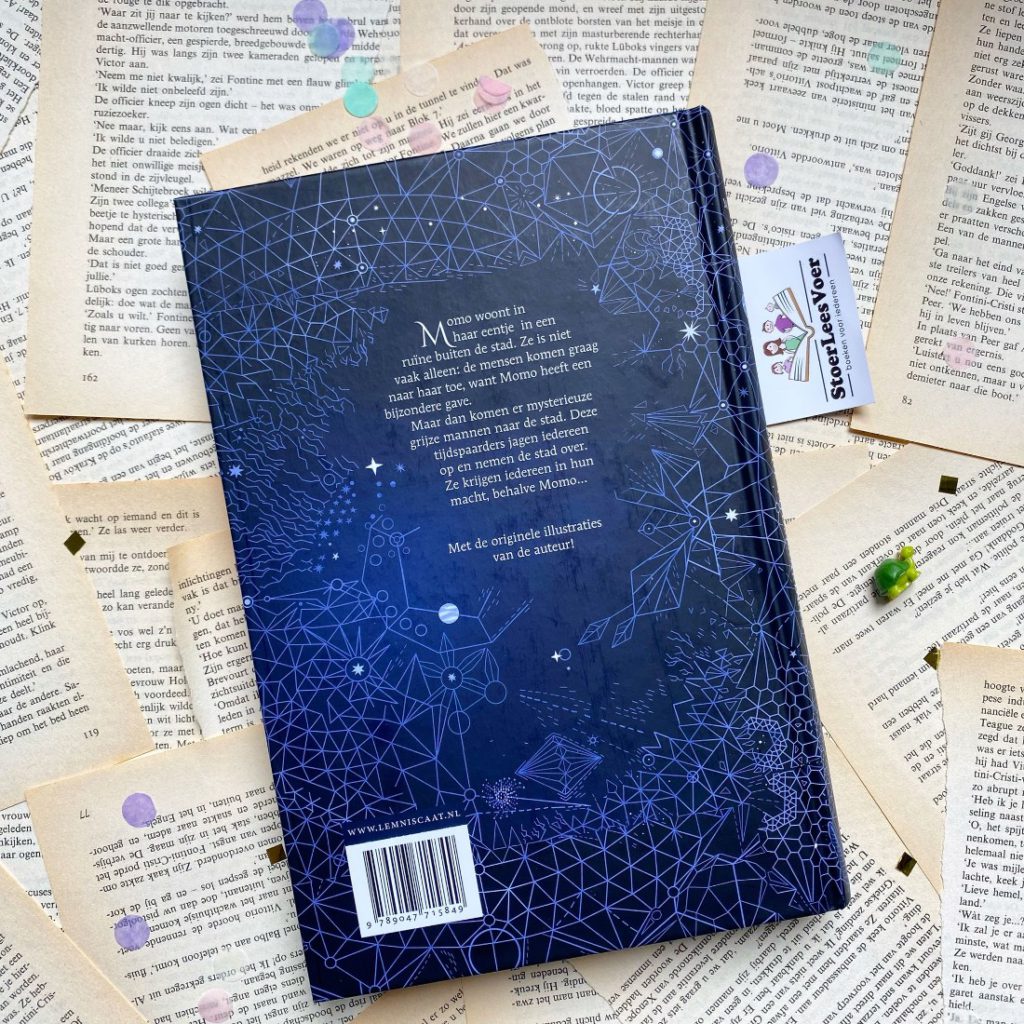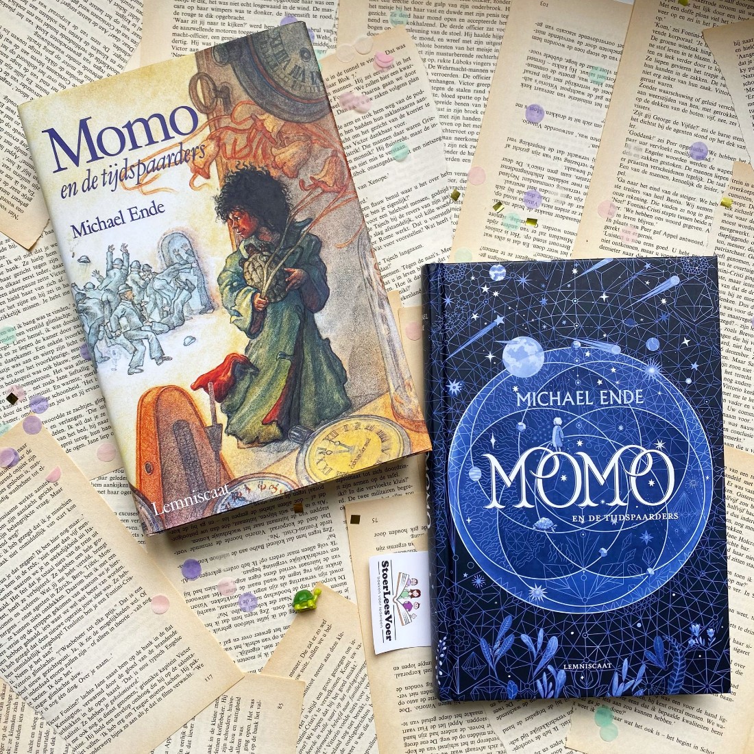 Toen ik enthousiast aan mijn moeder vertelde dat deze mooie versie van Momo er was, viel ons iets op. Wij hadden namelijk beide de herinnering dat de titel van dit boek ‘Momo en de tijdmeesters’ was. Ik ben gaan googlen, zoeken en pluizen maar de titel is altijd ‘Momo en de tijdspaarders geweest’. Ik keek ook op de VPRO naar een film van Momo en die had ook niet die titel. Raar hoe het geheugen kan werken. Het is al even geleden dat ik in het verhaal ben gedoken en de oude versie lag al tijden te wachten. Dat uitgeverij Lemniscaat een herziene versie uitbrengt was een goede motivatie om eindelijk weer in dit verhaal te duiken.