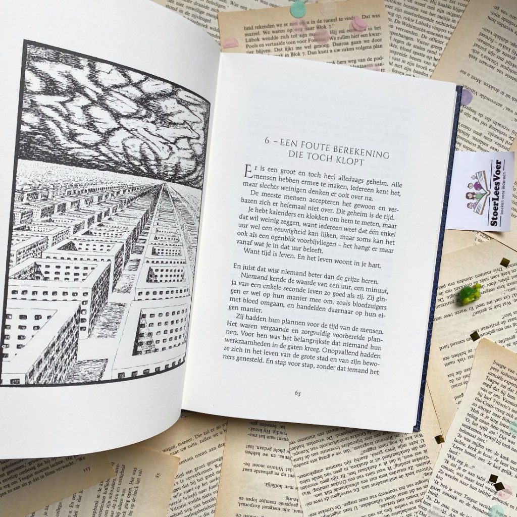 Michael Ende heeft iets unieks neergezet met zijn verhalen, en dat heb ik ook al ervaren met het herlezen van Het oneindige verhaal. Hij bouwt zoveel laagjes in zijn verhaal, als volwassene lees je het anders dan als een kind zonder dat het afbreuk doet aan de magie en fantasie van een verhaal. Als kind was Momo vooral spannend en magisch, als volwassene zie ik de kritiek naar de maatschappij en samenleving. Heel bijzonder dus om deze verhalen ook weer als volwassene te lezen. Ondanks dat ik gehecht ben aan de illustraties van Dick van der Maat, vind ik de toevoeging van de illustraties van Michael Ende echt geweldig. Sommige illustraties zijn een grafisch genot die bijna naar Escher leunen.