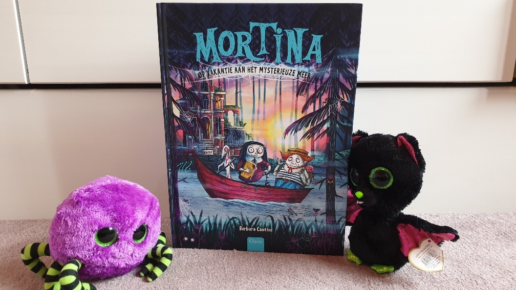 Mortina op vakantie aan het mysterieuze meer is echt een spannend en leuk griezelverhaal voor kinderen die niet bang zijn voor een beetje dood, spinnenwebben, spinnen en kapotte ledematen!