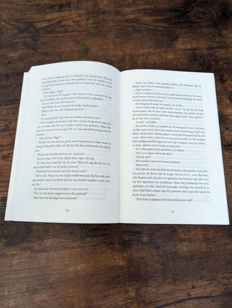 Naast Meidel, lezen we in Nachtloper over rechercheur Eddie. Hij onderzoekt de zaak en heeft bijzondere ingevingen en talent voor zijn vak. Dit is deel twee in de reeks over Eddie, die helemaal prima op zichzelf te lezen is. Toch intrigeert dit karakter mij zo dat ik wellicht deel een toch ook wil gaan lezen.