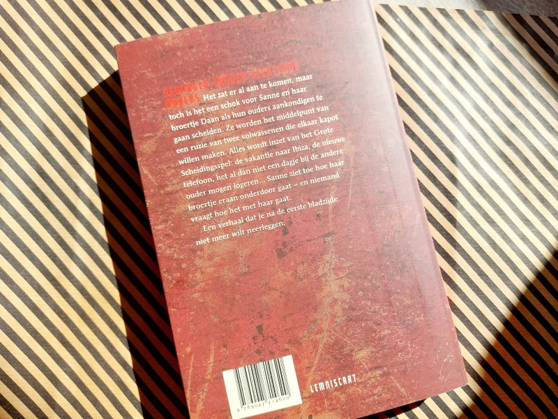Dit debuut van Gracia Lebbink laat zien wat de enorme gevolgen zijn van een complexe scheiding. Het is een beklemmend en schrijnend verhaal over een jonge puber die niet gezien wordt: niemand vraagt hoe het met mij gaat. Als de ouders van hoofdpersoon Sanne vertellen dat ze gaan scheiden, komt dat toch best als een verrassing. Er waren wel steeds meer ruzies en spanningen thuis, waar Sanne en haar broertje ook last van hadden. Maar na het besluit te gaan scheiden, wordt de strijd nog veel erger. Over geld, de omgang, het huis en nog veel meer. En dat op het moment dat Sanne naar de middelbare school gaat. Een Young Adult verhaal over een jong leven dat op zijn kop staat.