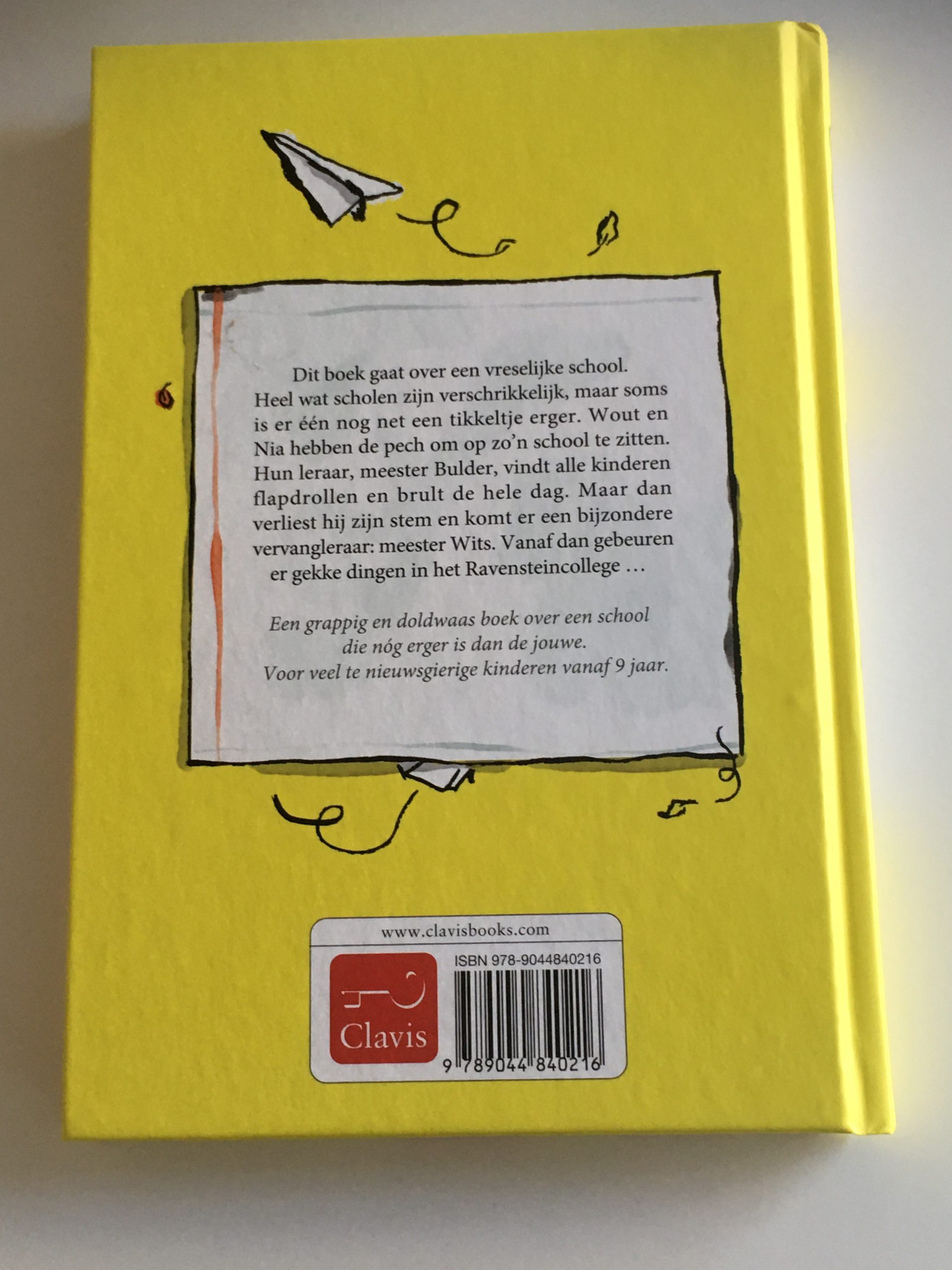 Niet spieken op pagina 39 is een grappig en doldwaas boek over een school die nóg erger is dan de jouwe. Voor veel te nieuwsgierige kinderen vanaf 9. Dit boek gaat over een vreselijke school. Heel wat scholen zijn verschrikkelijk, maar soms is er één nog net een tikkeltje erger. Wout en Nia hebben de pech om op zo’n school te zitten. Hun leraar, meester Bulder, vindt alle kinderen flapdrollen en brult de hele dag. Maar dan verliest hij zijn stem en komt er een bijzondere vervangleraar: meester Wits. Vanaf dan gebeuren er gekke dingen in het Ravensteincollege …