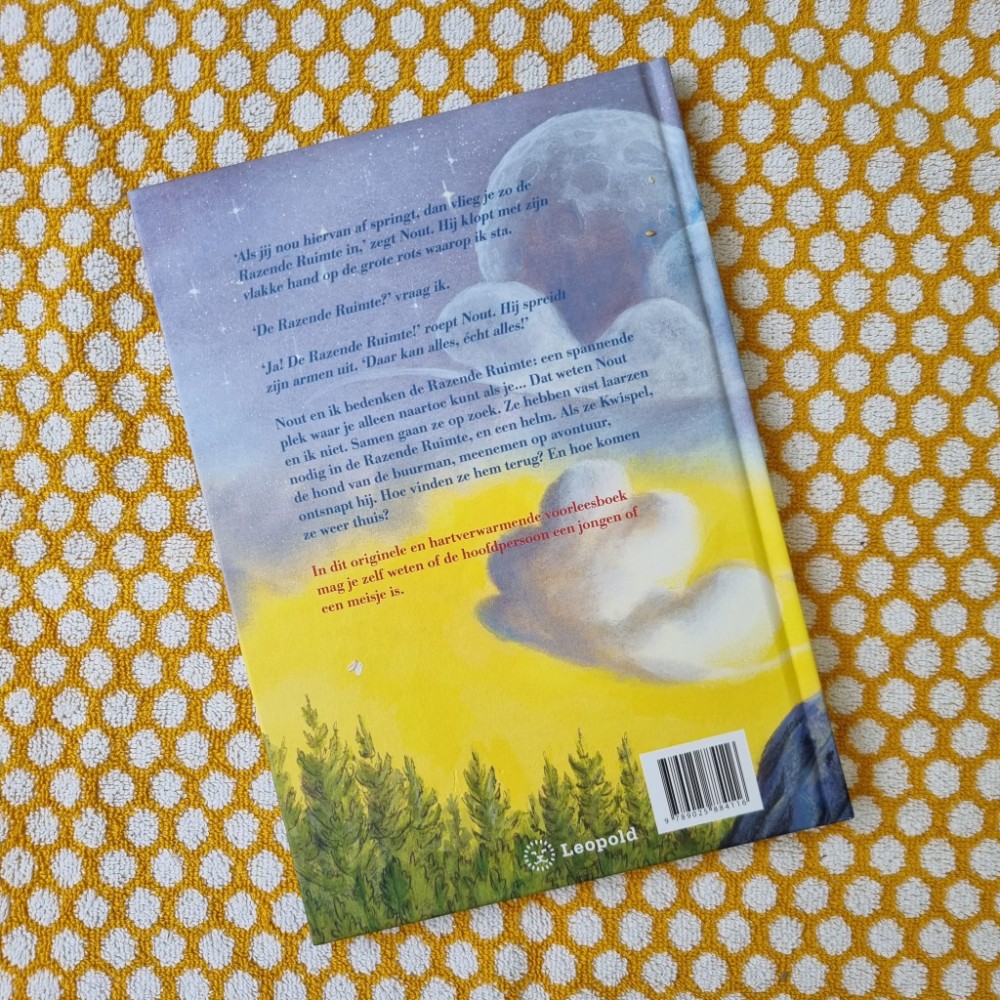 Nout en ik bedenken de Razende Ruimte: een spannende plek waar je alleen naartoe kunt als je… Dat weten Nout en ik niet. Samen gaan ze op zoek. Ze hebben vast laarzen nodig in de Razende Ruimte, en een helm. Als ze Kwispel, de hond van de buurman, meenemen op avontuur, ontsnapt hij. Hoe vinden ze hem terug? En hoe komen ze weer thuis?