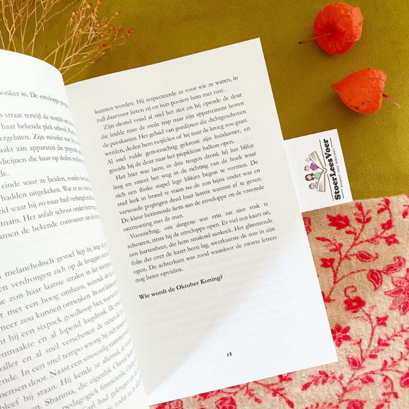 Oktober Koning is geschreven vanuit 4 oogpunten: Dex, Mara, Julia en Vincent. Ik had niet echt een band of connectie met de karakters. Daardoor miste ik wel de betrokkenheid en een fanatiek gevoel van aanmoediging. Ik had van tevoren wel een idee wie zou winnen, als er een winnaar zou zijn. Maar eigenlijk maakte het me niet zoveel uit. Ondanks het wat voorspelbare verloop, geen band met de karakters en mijn verdwaaldheid heb ik wel degelijk genoten van dit boek. Het was gewoon een lekker verhaal waarbij de dingen zijn zoals ze zijn. Er zitten hele sterke elementen in die ik geweldig vind. Zoals de visuele aspecten, maar ook het terugkerende thema van het sprookje van de biggetjes.