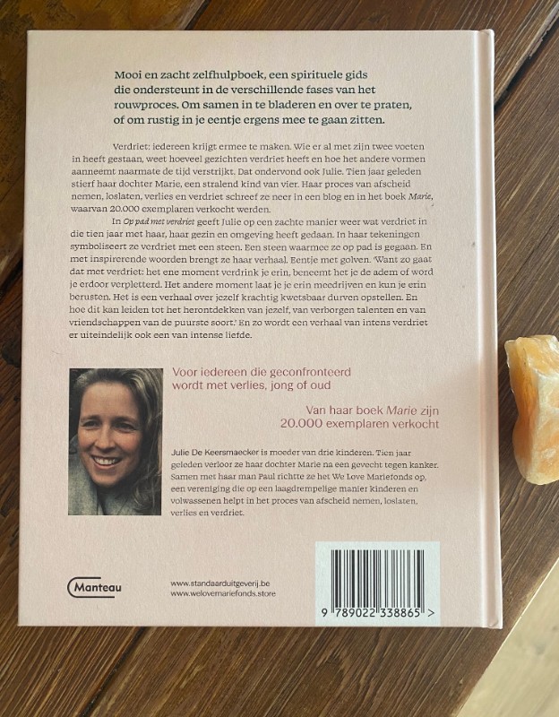 Julie de Keersmaecker is coach en moeder van twee levende meisjes en een overleden meisje. Tien jaar geleden overleed Marie aan kanker, ‘het grootste verdriet dat een mama ooit kan ervaren.’ Samen met haar man richtte ze het We Love Mariefonds op, een vereniging die op een laagdrempelige manier kinderen en volwassenen helpt in het proces van afscheid nemen. Julie schreef over haar rouwproces in het boek Marie waarvan meer dan 20.000 exemplaren zijn verkocht. In haar nieuwe boek Op pad met verdriet heeft Julie weergegeven wat het verdriet in tien jaar tijd met haar en haar omgeving heeft gedaan.