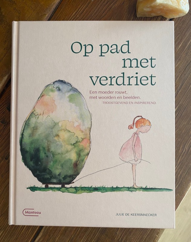 Julie is voor Op pad met verdriet in gesprek gegaan met de mensen om haar heen en heeft haar eigen emoties en zichzelf onder de loep genomen. Dit heeft ze in woord en beeld uitgedrukt. In haar tekeningen heeft ze het verdriet het symbool van een steen gegeven en met die steen is ze op pad gegaan. Het zijn prachtige tekeningen in mooie zachte kleuren met korte teksten erbij. Het maakt rouw zichtbaar en en het is fijn als je even te verdrietig of moe bent om te lezen.