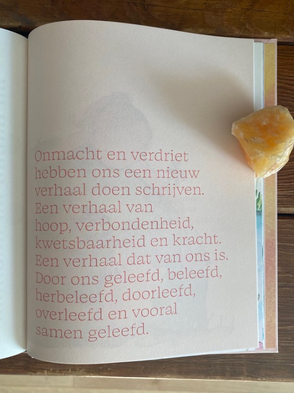 Julie heeft een persoonlijke en spirituele reis afgelegd. Ze beschrijft het ontdekken van zichzelf, verkregen wijsheid en het ontdekken van haar talenten. Zij en haar omgeving zoeken naar zingeving en verbondenheid. Samen en alleen leren ze. Zo werd een verhaal van intens verdriet ook een verhaal van liefde. Daarmee is het boek hoopvol en troostend en een verhaal vol veerkracht. Maar altijd zonder af te doen aan de pijn van verdriet. Het blijft namelijk balanceren.
