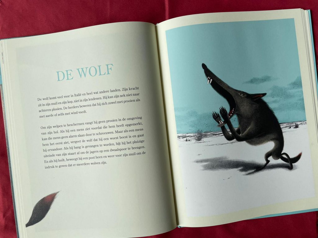Toen ik dit boek voor het eerst in handen kreeg, keek ik meteen naar de illustraties. Zonder de teksten dus door te lezen, ben ik eerst gaan bladeren om even alle tekeningen te bekijken. En echt… wauw! En nog eens wauw! Wat een geweldige tekeningen zeg. Rébecca Dautremer heeft voor een beperkt kleurenpalet gekozen. Maar daarmee de tekeningen toch tot in detail uitgewerkt. Heel knap dat ze aan de hand van de omschrijvingen, tekeningen heeft gemaakt van hoe zo’n dier eruit zou moeten zien. Los van het beeld dat we nu misschien hebben van bijvoorbeeld een draak of eenhoorn. Maar puur uitgaande van de middeleeuwse omschrijving.