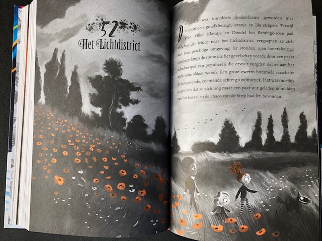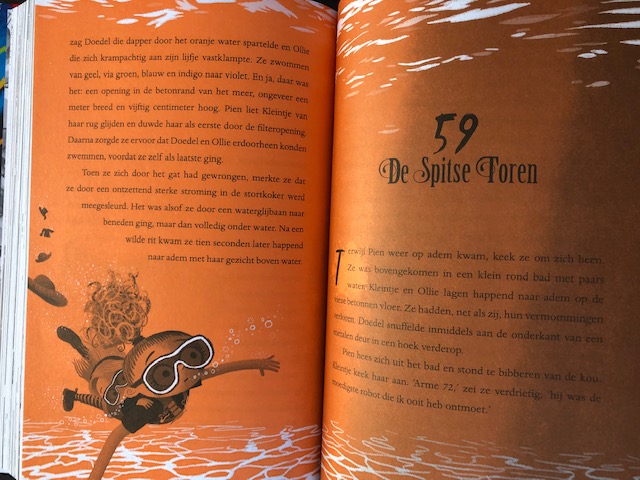 Naast het verhaal zijn ook de illustraties van de hand van Rob Biddulph. In coronatijd besefte hij dat veel ouders met kinderen thuis zaten. Deze schrijver en illustrator van het boek Pien Vermeer en de getekende stad is toen gestart met online tekenworkshops. Kijk maar eens op zijn website. Je zal begrijpen dat zijn workshops erg populair zijn. De illustraties die zijn gemaakt geven het boek natuurlijk veel extra’s. En af en toe zijn het ook echt de illustraties die het boek omhoog tillen. Ik had nog nooit van Rob Biddulph gehoord, maar vanaf nu blijft hij bij mij hangen. En ik vermoed bij velen van ons.