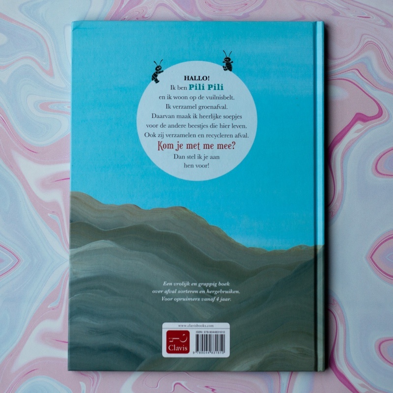 Hallo! Ik ben Pili Pili en ik woon op de vuilnisbelt. Ik verzamel groenafval. Daarvan maak ik heerlijke soepjes voor de andere beestjes die hier leven. Ook zij verzamelen en recycleren afval. Kom je met me mee? Dan stel ik je aan hen voor in mijn boek Pili Pili en de vuilnisbelt beestjes!