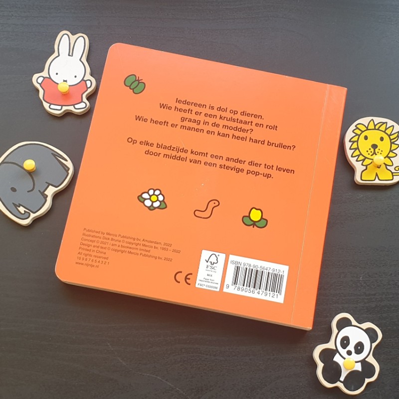 Ik heb inmiddels al best wat boeken van nijntje gelezen. Maar deze behoort toch wel tot één van mijn favorieten. Ik hou van de herkenbare kleuren en illustraties en die zijn in dit boek net wat specialer dan anders. De kleurrijke illustraties springen namelijk letterlijk uit Dieren, een mooi pop-up boek van Dick Bruna.