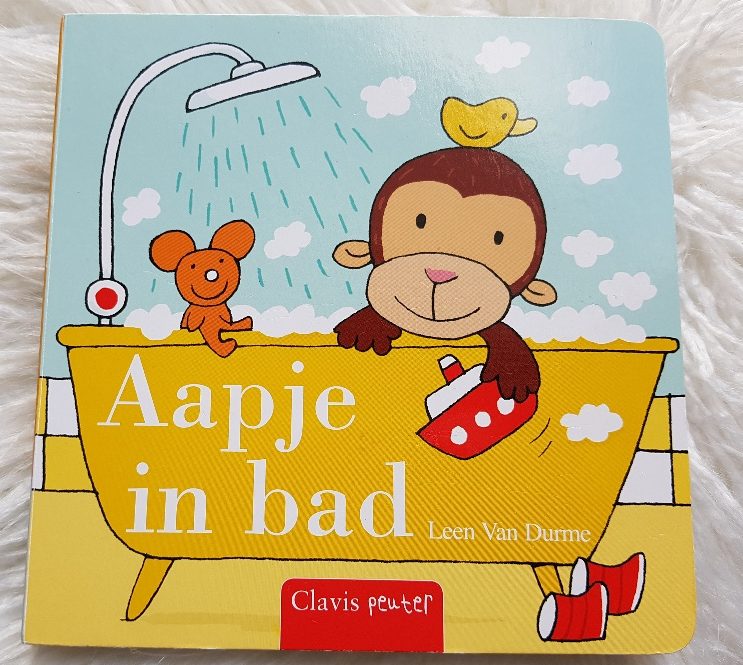 De kleertjes gaan uit, de kraan gaat open, en de speeltjes gaan in bad! Nu Aapje ook natuurlijk. Wassen met veel zeep is veel schuim. Daarna afdrogen en de pyama aan.