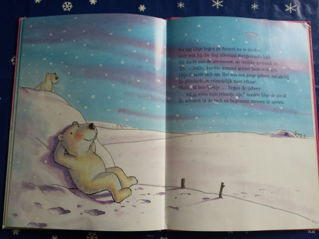 De kleine ijsbeer is aaibaar en dat vinden de kinderen geweldig. Dochterlief noemt iedereen haar vriendje zelfs als ze een kindje pas 2 minuten kent. Voor peuters is dit echt een leuk boek wat goed aanslaat bij hun belevingswereld.