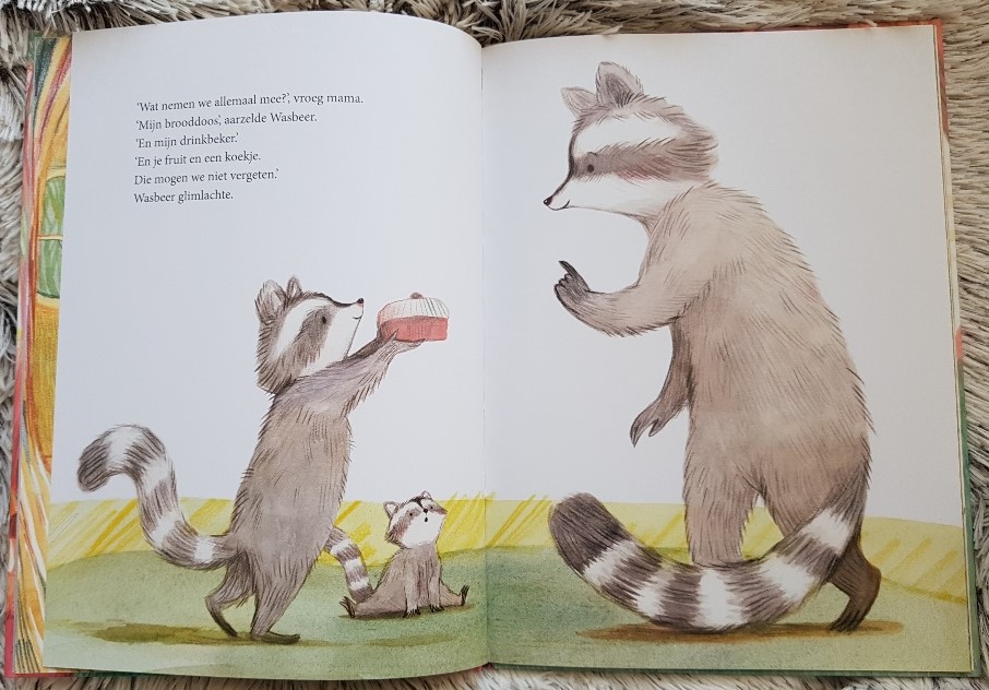 Een mooi prentenboek om je voor te bereiden op school is samen naar school. Het verhaal gaat over een wasbeer. Na een lange vakantie gaat hij terug naar school. Hij moet goed nadenken wat hij allemaal mee moet nemen naar school. Onderweg naar school heeft wasbeer buikpijn.