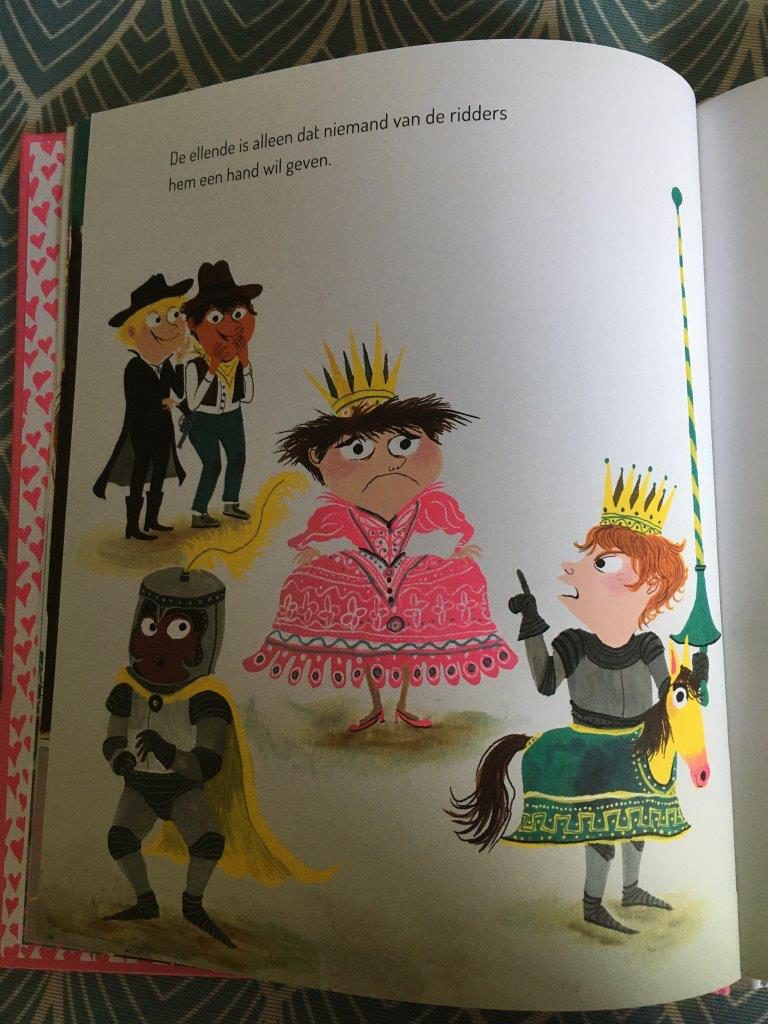 Mijn Jongste heeft een felroze jurk in haar kast hangen met ettelijke tiara’s erbij. Zij snapte wel dat Kevin dat mooi vond, maar vond het toch ‘een beetje gek’ dat jongens ook prinses konden zijn. Mijn Oudste, ook een meisje, maar wel één met een ridderpak in plaats van een prinsessenjurk was het daar niet mee eens. Je mag je toch verkleden zoals je wilt? Daar heeft ze groot gelijk in, vind ik. Het gaat er wat mij betreft om dat ieder kind eens in de huid van een ander kan kruipen. Een kostuum kan daarbij helpen. Dus volg het voorbeeld van Kevin en wie de prinsessenjurk past trekke deze aan. Wel vragen aan je ouders of je de make-up mag lenen. En vooral of ze je willen helpen. Je wilt tenslotte geen clowntje worden, maar een prinses, net als Prinses Kevin.