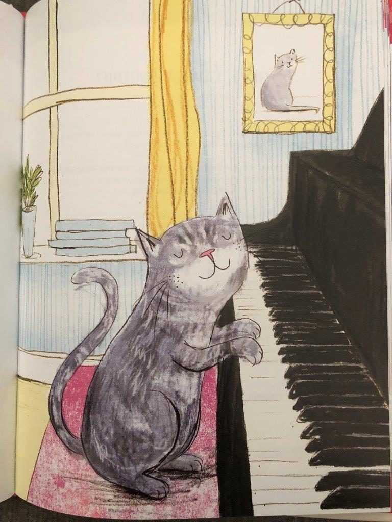 Wat ik een leuk verhaal vind is over Nora CATcertopoes Dit gaat over een kat, geboren in 2004, die zichzelf heeft leren pianospelen en is er een 4 minuten durende compositie voor haar gemaakt. Sinds iemand het filmpje -Pratice Makes Purr-fect online heeft gezet, is ze een beroemdheid. Ze staat in het Guinness World Records- boek als eerste pianoconcert dat ooit voor een kat is gecomponeerd.Het boek heeft veel verschillende en leuke illustraties met veel kleuren. En heeft gezellig ingedeelde bladzijdes.