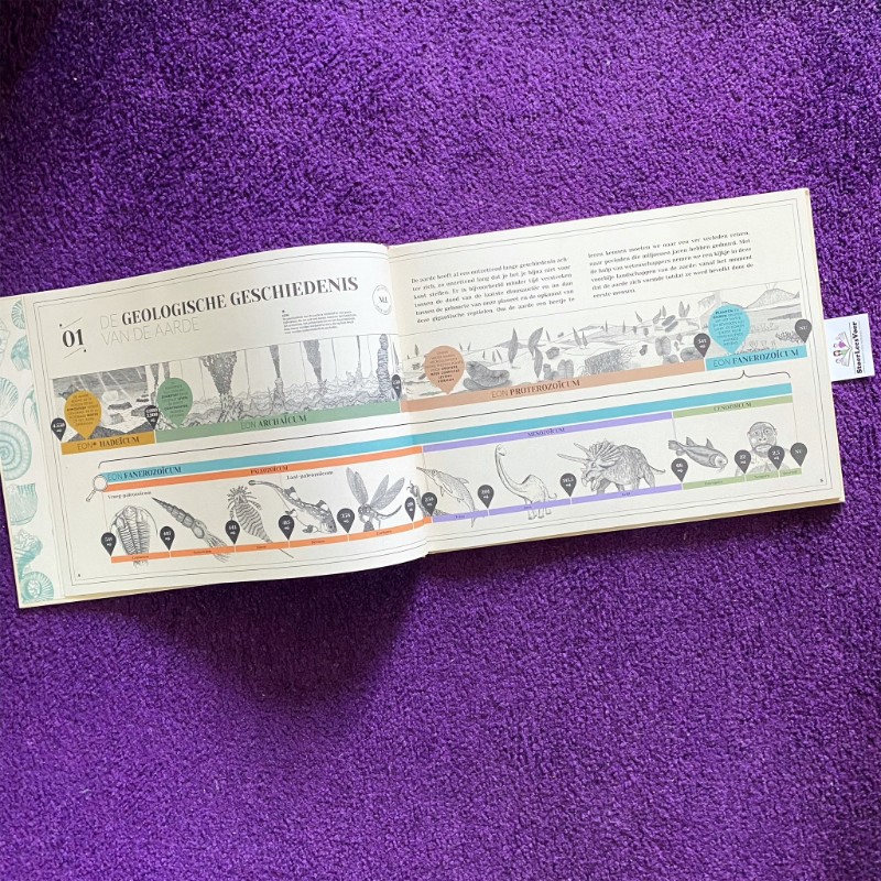 Het boek ‘Reis door de tijdperken’ is dus wel voor oudere kinderen, of kinderen die met beleid boeiende informatie tot zich willen nemen. Voor volwassenen vind ik het ook echt een prachtig boek. De informatie is niet heel uitgebreid, maar wat mij betreft lekker tot de kern en precies goed. En het is correct en actueel wat in dit boek staat, ook wel zo belangrijk.
