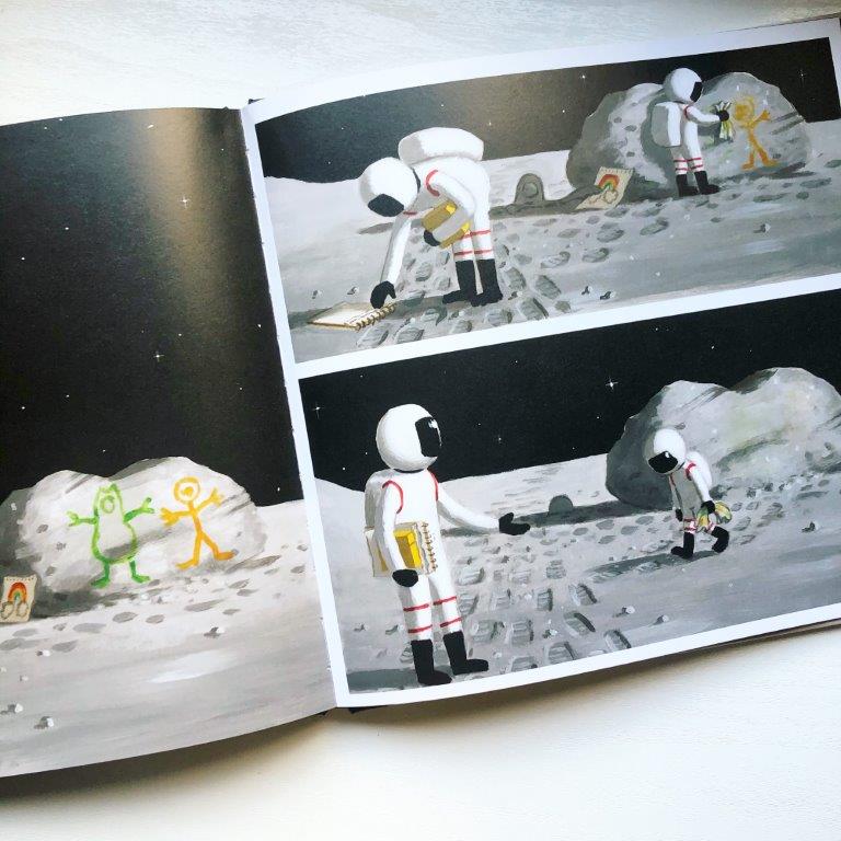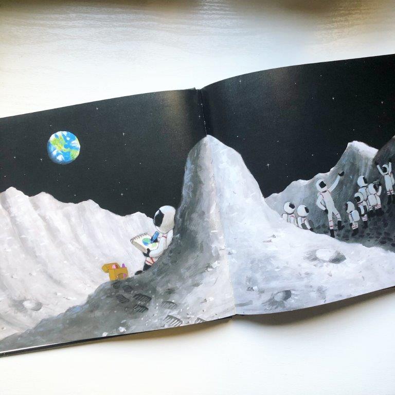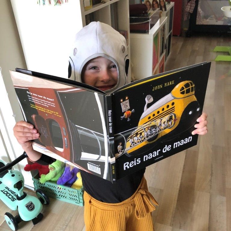 Wij vinden de Reis naar de Maan een prachtig prentenboek en het wordt nog elke dag uit de boekenkast gehaald! Inclusief het astronautenpak!