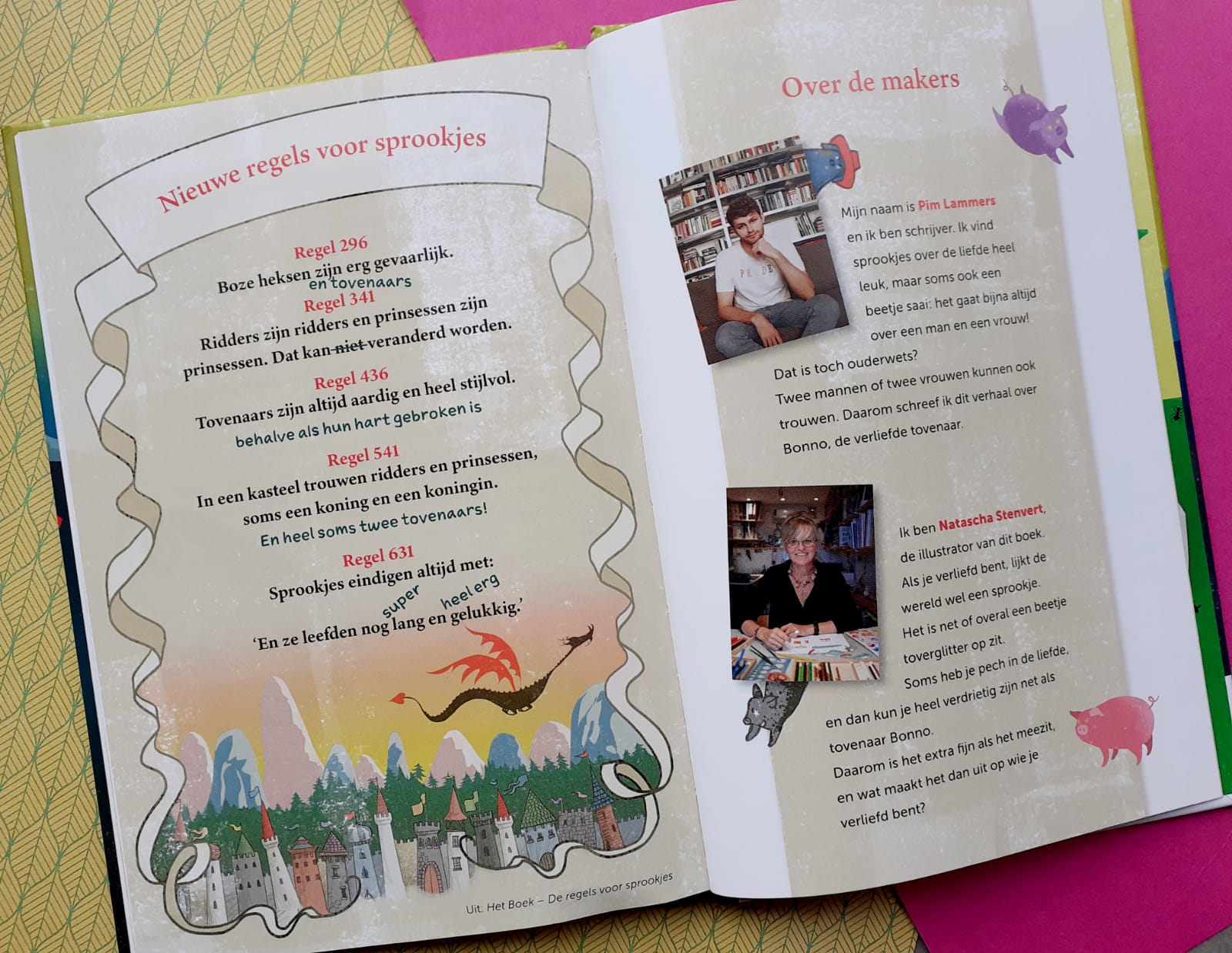 Wat een verademing is zo’n modern sprookje. Kastelen in combinatie met datingprofielen van tovenaars. Een prinses die liever een ridder wil zijn, en een ridder die liever een prinses wil zijn. Het kan dus allemaal! Met tot slot een aantal nieuwe regels voor de sprookjes, zoals: