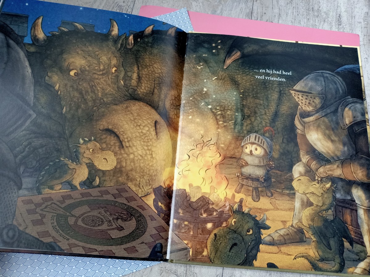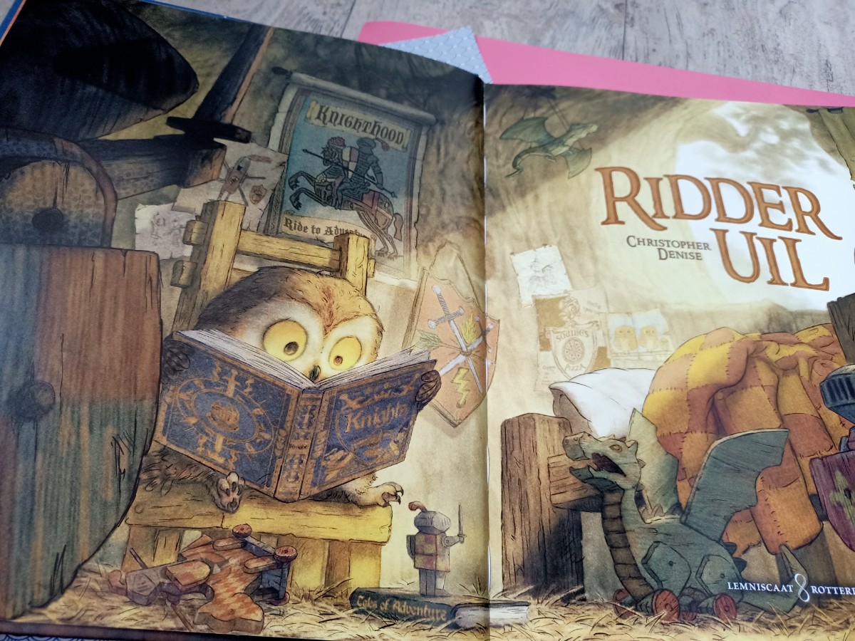 Ken je dat, dat je een boek hebt met van die mooie illustraties dat je hem niet weg wilt leggen? Dat je blijft kijken en steeds weer iets nieuws ontdekt? Dat is wat ik van Ridder Uil vind. De eerste pagina, met alleen de titel, is al super tof. Aan werkelijk alle details is gedacht. Het geeft me een nostalgisch gevoel, de donkere platen. Moeder met zoon die aan het spelen is. Een prentenboek die je in de kast wilt hebben! Maar naast de geweldige illustraties is het ook een verhaal dat ik met mijn kinderen wil delen. Een prentenboek over geloven in je dromen en zijn wie je bent.