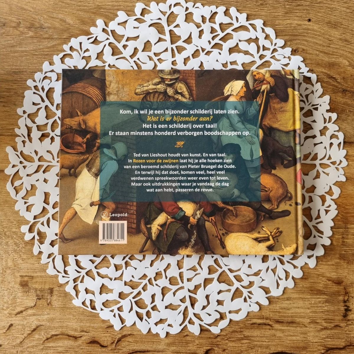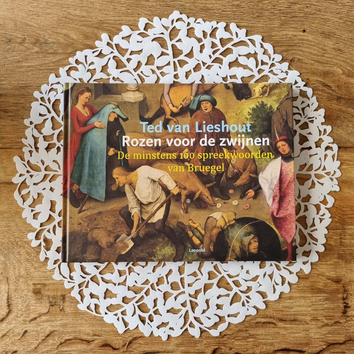 Ted van Lieshout houdt van kunst. En van taal. In Rozen voor de zwijnen laat hij je alle hoeken zien van een beroemd schilderij van Pieter Bruegel de Oude. En terwijl hij dat doet, komen veel, heel veel verdwenen spreekwoorden weer even tot leven. Maar ook uitdrukkingen waar je vandaag de dag wat aan hebt, passeren de revue.