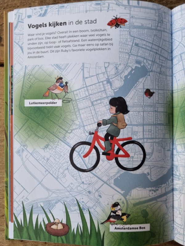 De vijf genoemde vogels komen uitgebreid aan bod in Ruby’s safari. De foto ’s heeft Andy Vos zelf gemaakt, echt een mooie aanvulling. Zo kunnen de meer visueel ingestelde kinderen zich direct een natuurgetrouw beeld vormen. Prettig is dat je ook wat van de omgeving ziet, zoals de boom waarin de vogel is gespot. Dit geeft ook interessante informatie over de natuur.