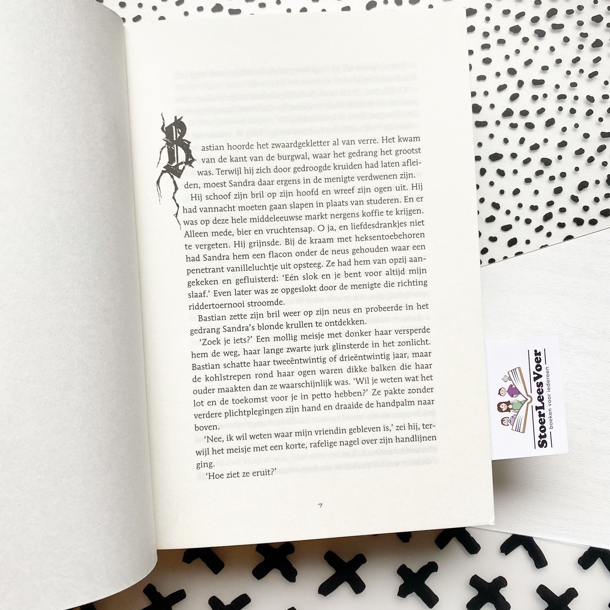 Ik heb zo intens genoten van Saeculum. Vanaf de eerste letter. Allereerst refereert Poznanski aan Bastian uit Het oneindige verhaal, mijn favoriete boek. En tevens ook mijn eerste gedachte als ik de naam Bastian hoor. En over letters gesproken, de vormgeving is uitmuntend gedaan. Elk hoofdstuk begint met een initiaal, miniatuur of lombarde in dit geval, zoals ze ook in de middeleeuwen deden. Een sierlijke en opvallende beginletter die een nieuw hoofdstuk aankondigt. Daarbij zijn er mysterieuze zwarte bladzijdes die een ander verhaal (of verhalen) vertellen. Mysterie en oudheid overal!