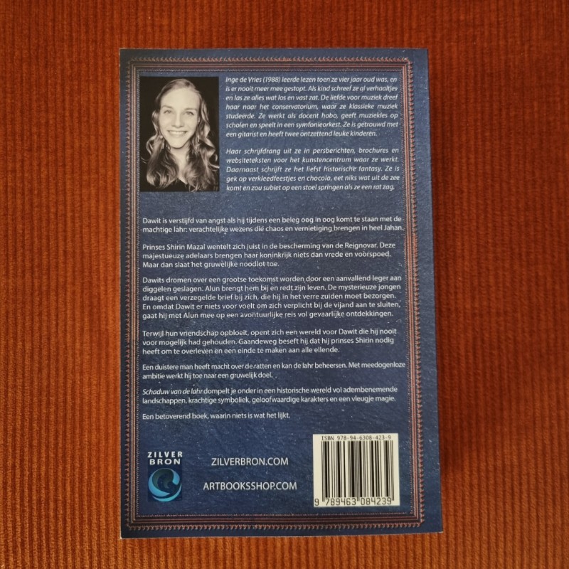 Inge de Vries heeft een heel aansprekend stukje op de flaptekst geschreven over zichzelf. Daaruit blijkt dat ze heel muzikaal is, dat is zelfs haar werk, en dat ze zelf heel bang voor ratten is. Een grappig detail, want dat is een thema in het boek. Inge schrijft voor haar werk ook, commerciëlere teksten vooral, en Schaduw van de lahr is zoals gezegd haar boekendebuut.