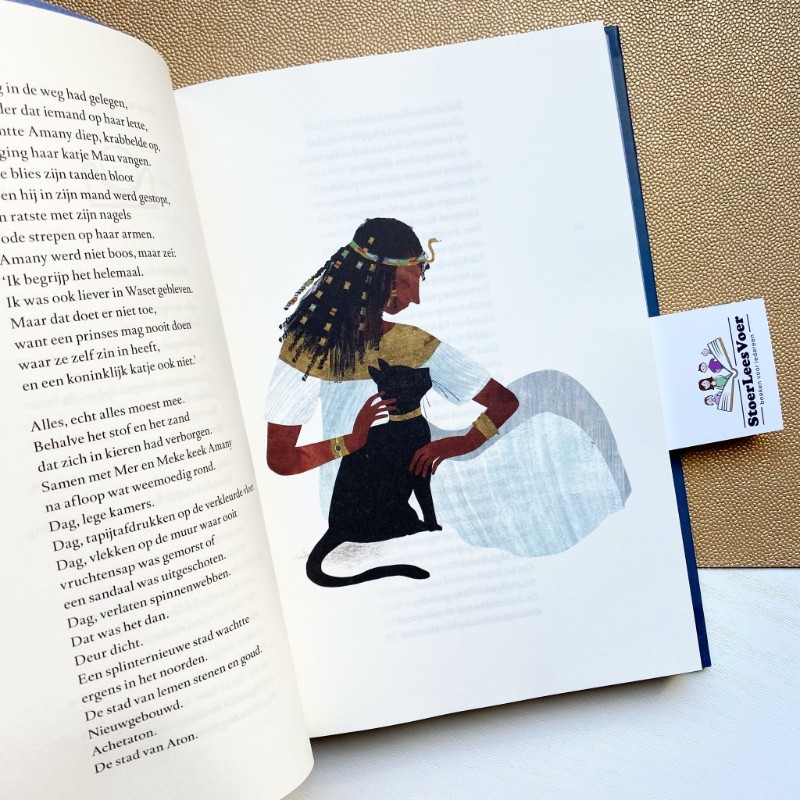 Lida Dijkstra schreef een meeslepend verhaal over mensen en goden, list en bedrog, goud en armoede. Maar bovenal over een doortastend en moedig meisje dat haar eigen weg zoekt in een tumultueuze tijd vol gevaar. De schitterende illustraties van Djenné Fila, gemaakt van verschillende materialen en met diverse technieken, brengen het verhaal nog meer tot leven. Ik kan nog vele woorden wijden aan hoe perfect Schaduw van Toet voor mij is. Maar wat mij betreft duik je zelf in dit sublieme stukje jeugdliteratuur en vertrek je naar het oude Egypte. Amany wacht al op je.