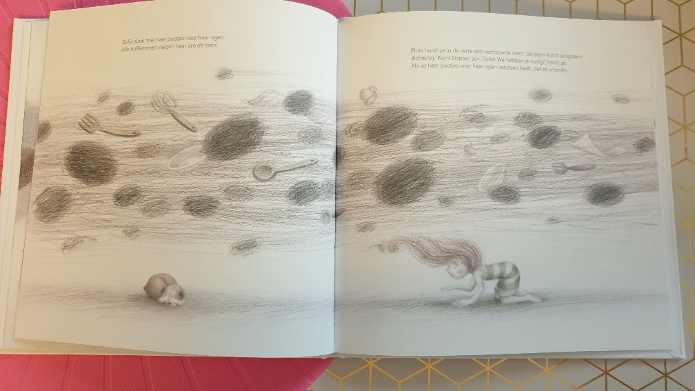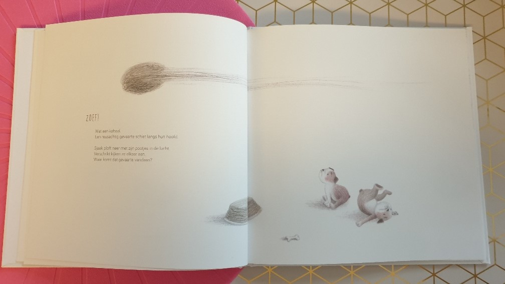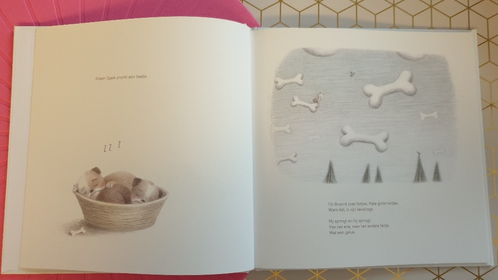 Achterin het boek las ik dat dit verhaal is ontstaan uit een dierbare herinnering. Ik vraag mij dan ook af of er echt een koffiezetapparaat op hol is geslagen en gezorgd heeft voor een echte koffiestorm? Wat zullen de hondjes zijn geschrokken!