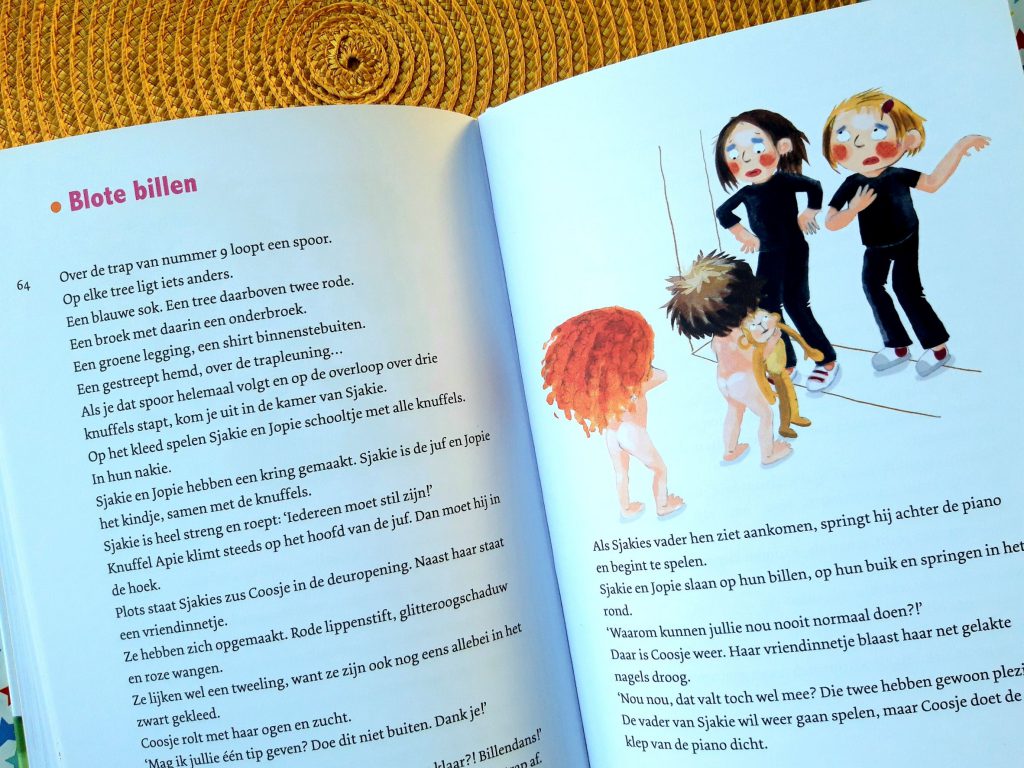 Het zijn verhaaltjes met humor en herkenbare gezinstaferelen. Over kinderen die graag in hun blote billen lopen en gerust ook schaamteloos zo naar buiten zouden lopen. Gelukkig bedenkt Sjakie dat hij liever geen mieren tussen zijn billen wil! En zo zijn er nog veel meer grappige verhaaltjes, bijvoorbeeld Tof Vuil en IJs voor de hele Straat. Leuke titels!