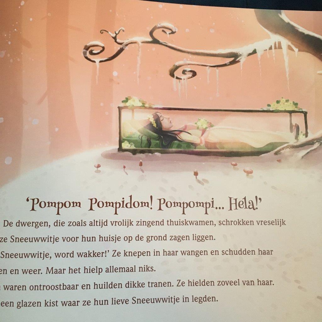 ‘Sneeuwwitje en De Zes Dienaren’ zou een wonderschone samensmelting van twee sprookjes kunnen zijn. Ik vind dat daar toch een opdracht ligt voor de mensen van de Efteling. Maar goed, nog even over de verhalen in deze boeken. Het verhaal van Sneeuwwitje kent iedereen. Iedereen begrijpt vast ook dat dit niet de versie van Disney is. Dus waarin een bewusteloze Sneeuwwitje wordt wakker gekust door een wildvreemde prins. Hier wordt gewoon ouderwets gestruikeld door een stel dwergen waardoor die appel losschiet.