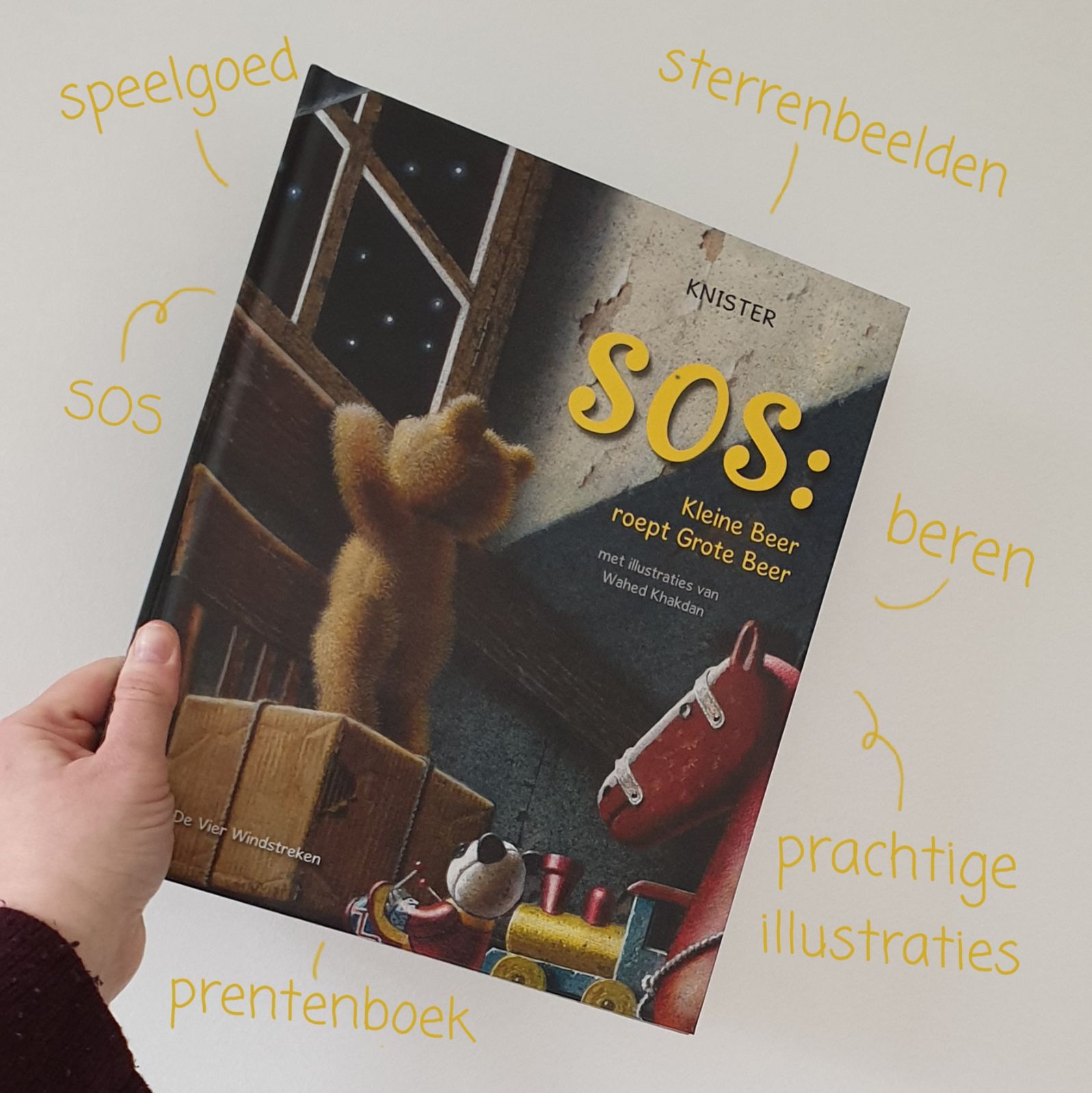 Een lieve kennismaking met de sterrenbeelden in onze Melkweg. SOS: Kleine beer roept grote beer neemt verlaten speelgoed mee ons sterrenstelsel in. Zullen ze daar hun nieuwe thuis vinden tussen de sterrenbeelden?