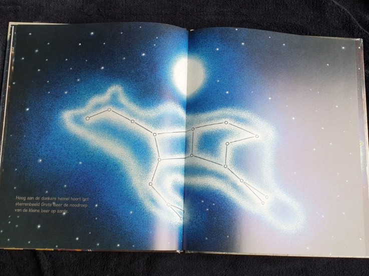 Als kind was ik al gefascineerd door onze sterren. Zoekend naar sterrenbeelden staarde ik naar de donkere hemel. En ook mijn dochter lijkt deze interesse te hebben. Terwijl we samen SOS: Kleine beer roept grote beer lezen zie ik haar belangstelling groeien. Vol enthousiasme wijst ze naar de prachtig geïllustreerde sterrenbeelden. En zodra het boek klaar is gaat het gordijn open om de sterrennacht te kunnen bewonderen.