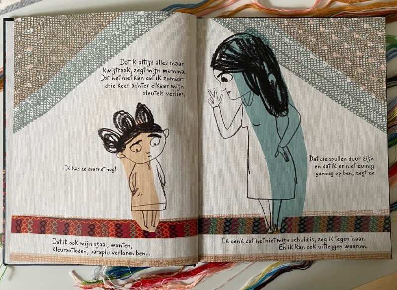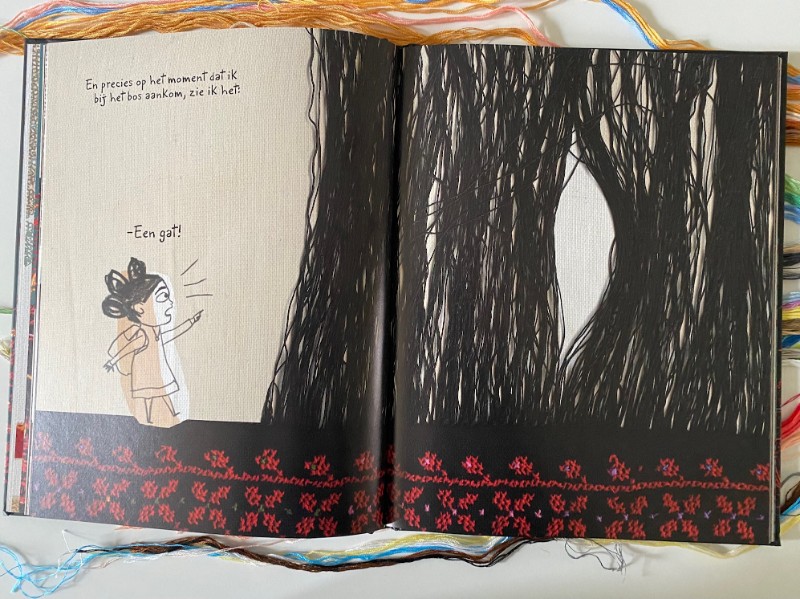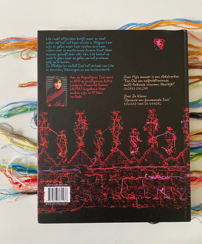 Ik borduur zelf graag dus moest Steekje Los natuurlijk lezen. Ik weet dat een borduurwerk er altijd zo mooi en geordend uitziet aan de voorkant met de kruisteken, maar aan de achterkant een rommelig tafereel is met al die knoopjes en draadjes. Wat een ontzettend leuk idee om dat eens niet te verstoppen maar naar voren te brengen in een verhaal. Met de symboliek dat alles in het leven meerdere kanten heeft en dat dat het leven ook spannend maakt.