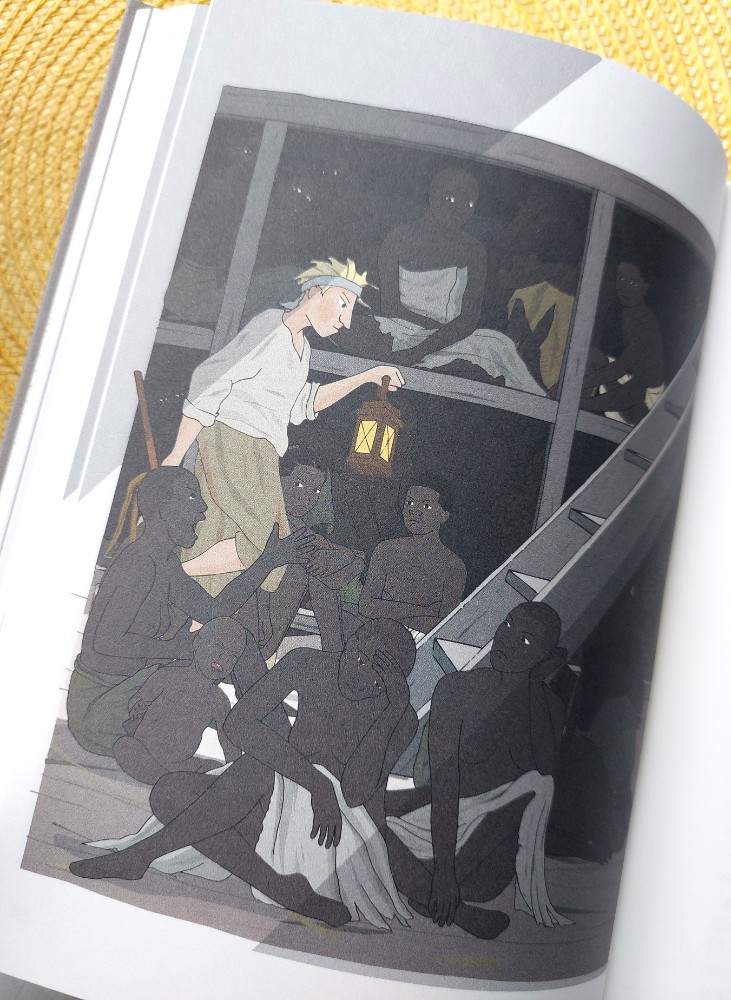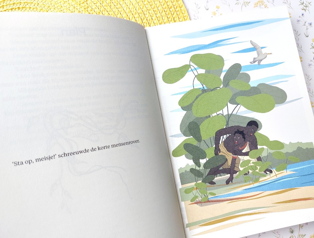 Het verhaal wordt echt vanuit de gedachten van de kinderen beschreven. Dit maakt het realistisch en heel goed invoelbaar. Dat komt ook door de illustraties, die zijn zeer indrukwekkend en geven het verhaal een enorme extra lading en diepgang. Want we zien slaven opeengepakt in het ruim van het schip, we zien slaven met wonden van het suikerriet, en bijvoorbeeld ook de bloedhonden op de plantage. Knap van illustrator Renate Siepel hoe ze de kwetsbaarheid en wreedheid zo treffend in beeld weet te brengen.