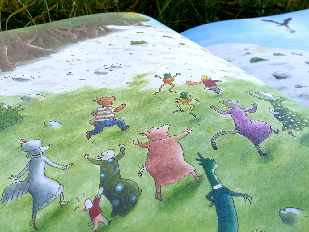Ik ben groot voorstander van kinderen hun eigen fantasie te laten gebruiken. Taart voor iedereen is daar perfect voor. Dit mooie prentenboek heeft namelijk helemaal geen woorden. Waardoor je dus fijn de illustraties kunt bekijken en zelf mag bedenken wat er precies gebeurd.