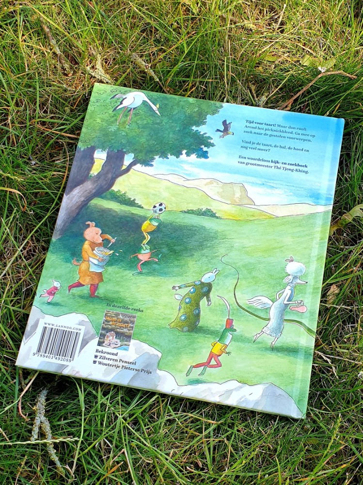 Ook leuk om te benoemen is dat Thé Tjong-Khing met zijn vergelijkbare boek Waar is de taart bekroond werd met een Zilveren Penseel en de Woutertje Pieterse prijs.