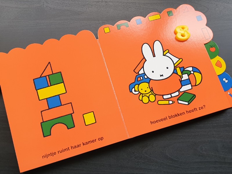 Tel je mee met nijntje? is een stevig kartonboekje. Daardoor is het zeer geschikt om zelf door te bladeren door de aller kleinste.