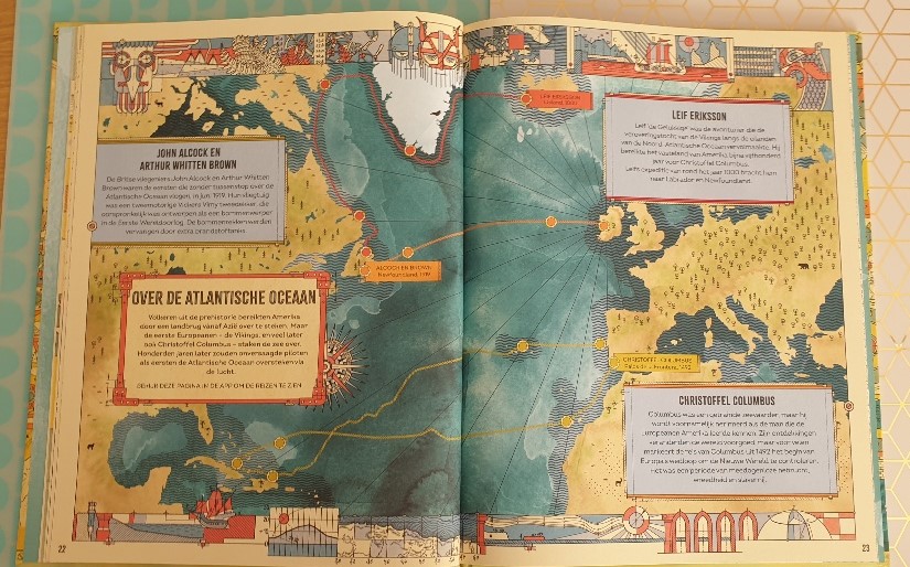 Wat dit boek super gaaf maakt is dat je er zelfs een app bij kunt downloaden. Bij deze app kun je de tochten van de grootste ontdekkingsreizigers in je scherm te zien! Compleet met extra informatie natuurlijk. Helaas kon ik de app niet vinden met mijn Android phone. Maar dat maakt het dit boek niet minder mooi.