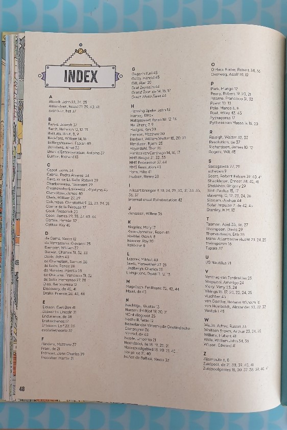 In eerste instantie lijkt het niet uitnodigend als je altijd prentenboeken bent gewend, maar ben je informatieve geschiedenisboeken gewend dan is dit boek een welkome afwisseling! Wat een kleuren, en wat een informatie over zoveel ontdekkingsreizigers.