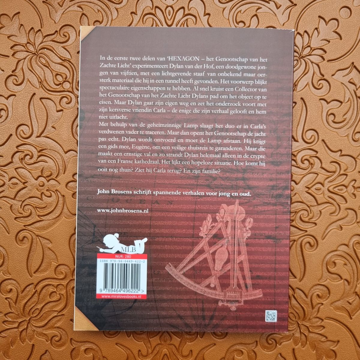 In deel 1 van de trilogie ‘Hexagon – het Genootschap van het Zachte Licht – ontdekte Dylan een geheimzinnige lichtgevende staaf van een onbekend en oersterk materiaal. Tijdens zijn experimenten stuit hij op een Collector van het Genootschap van het Zachte Licht die hem duidelijk maakt dat hij de staaf illegaal gebruikt en moet inleveren. Bij de confrontatie verdwijnt Dylan naar een andere tijd.