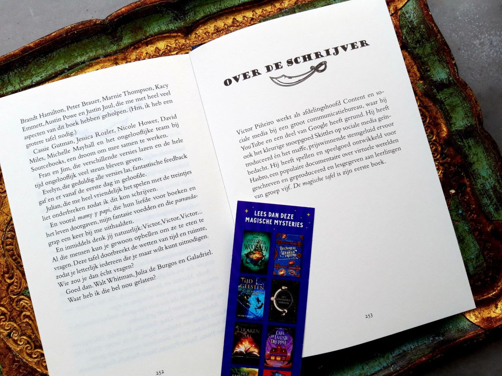 De magische Tafel is het eerste deel van de serie Tijdgeesten. We zijn benieuwd naar meer! Dit boek gaat direct vanaf het begin al mysterieus van start, en we konden het maar moeilijk wegleggen. Het is in aansprekende taal voor jongeren geschreven en vertaald. Van chill, loco tot bro. Alles komt voorbij. Met ook een portie Puerto Ricaanse cultuur, door de invloed van schrijver Victor Pineiro. Een alleskunner zo blijkt die lesgeeft, hoofd social media is van een communicatiebureau én spellen en speelgoed bedenkt voor Hasbro. Tof!