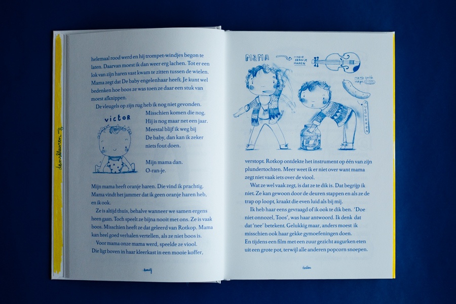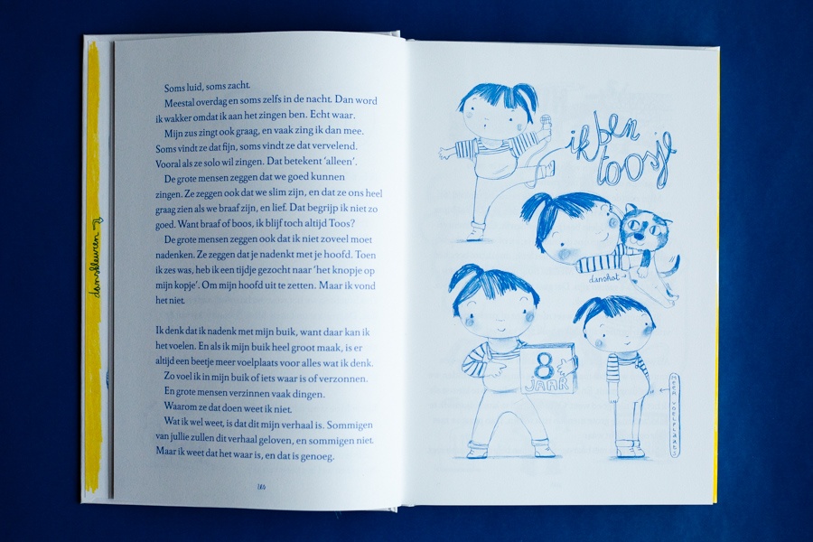 De illustraties van Emma Thyssen (de nicht van Tess Thyssen) zijn herkenbaar. Ze illustreert Toosje Tollebrok ook weer met een voor haar herkenbare expressieve stijl. De illustraties geven beeld aan de tekst van Tess Thyssen die al heel beeldend schrijft. Het maakt dat het boek, zeker voor jonge lezers, nog meer gaat leven. Kijk zelf maar eens naar het schutblad hieronder. Een voorproefje voor de rest van het boek.