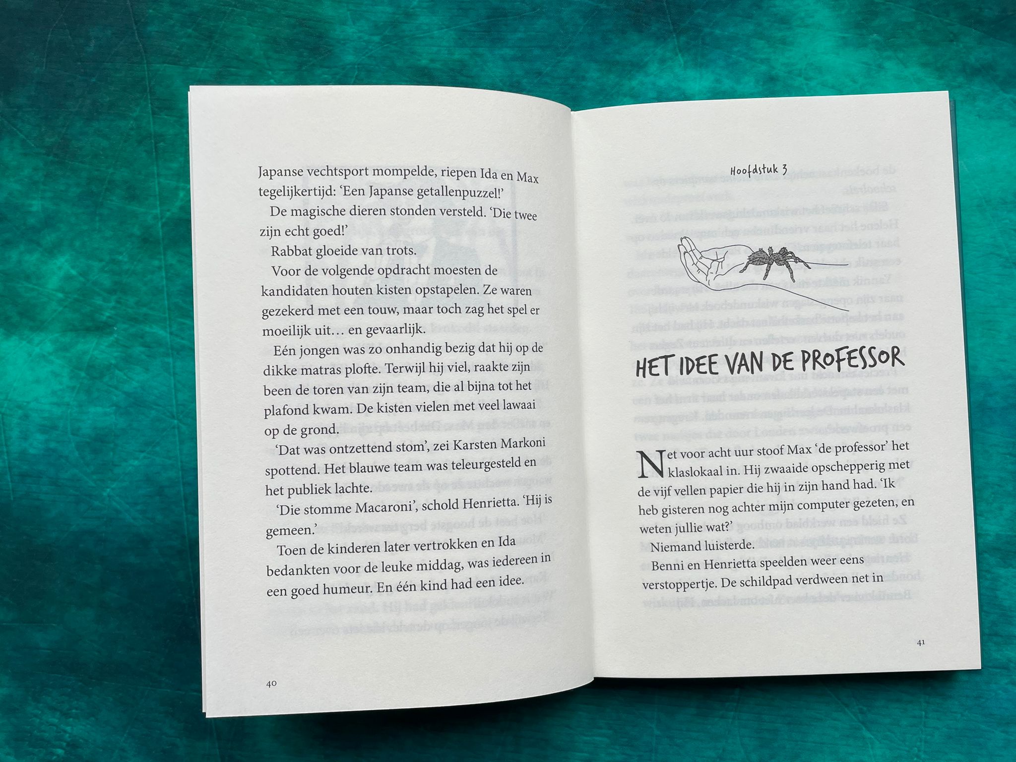 De illustraties zijn weer geweldig. Deze zijn van Martijn van der Linden (die naam herkende ik meteen van Bob Popcorn, maar hij heeft nog veel meer toffe illustraties gemaakt). Vooral de kaft is echt een plaatje. Als je goed kijkt, zie je allerlei elementen uit het verhaal terugkomen, en de magische dieren die in dit deel geïntroduceerd worden staan in de spotlight. Kortom: ‘Top of flop’ is een echte topper, die je zeker moet gaan lezen!