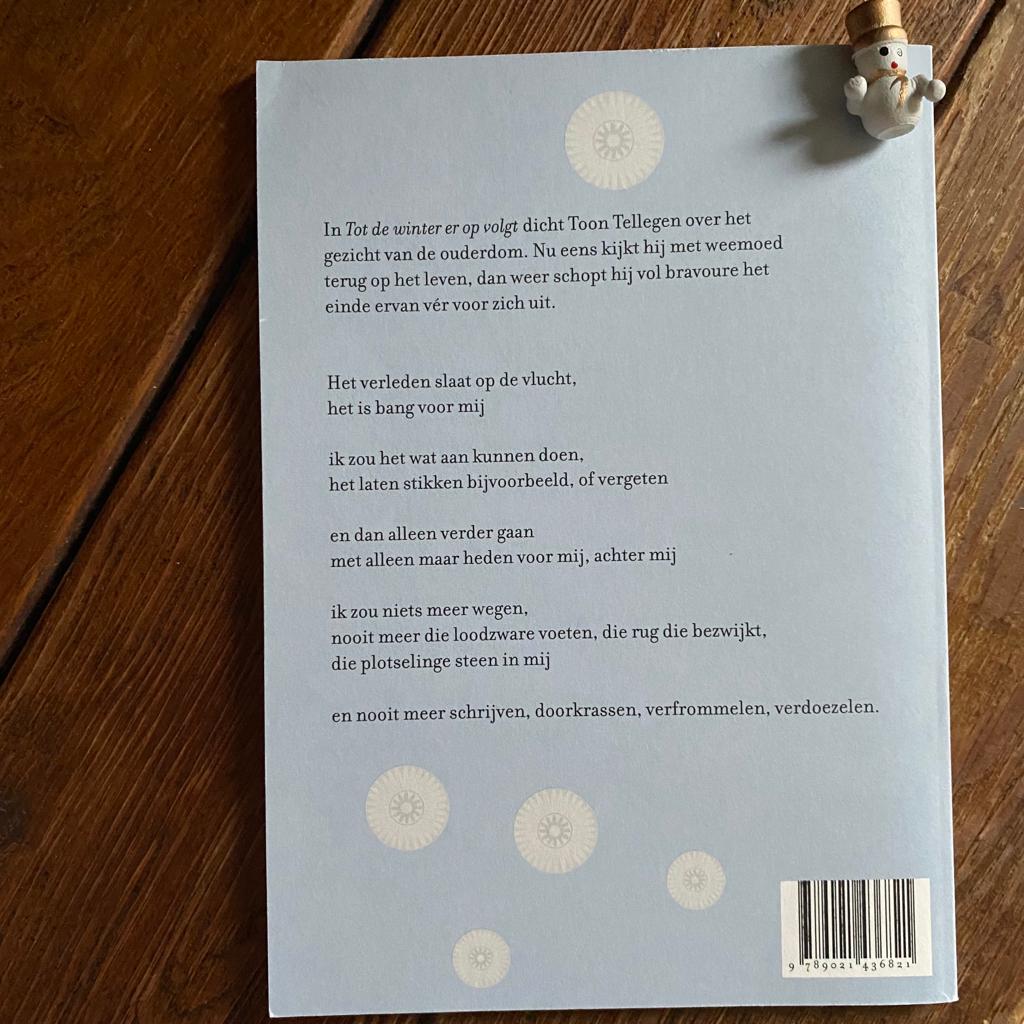 In Tot de winter er op volgt dicht Toon Tellegen over het gezicht van de ouderdom, zijn ouderdom. Tellegen is een veelvuldig bekroond schrijver. Zo ontving hij de Theo Thijssen-prijs, de Hendrik de Vriesprijs en de Constantijn Huygensprijs voor zijn gehele oeuvre. Misschien ken je hem van zijn mooie en grappige dierenverhalen? Maar hij schrijft ook autobiografische boeken en gedichten. Hij heeft inmiddels al twintig dichtbundels op zijn naam staan.
